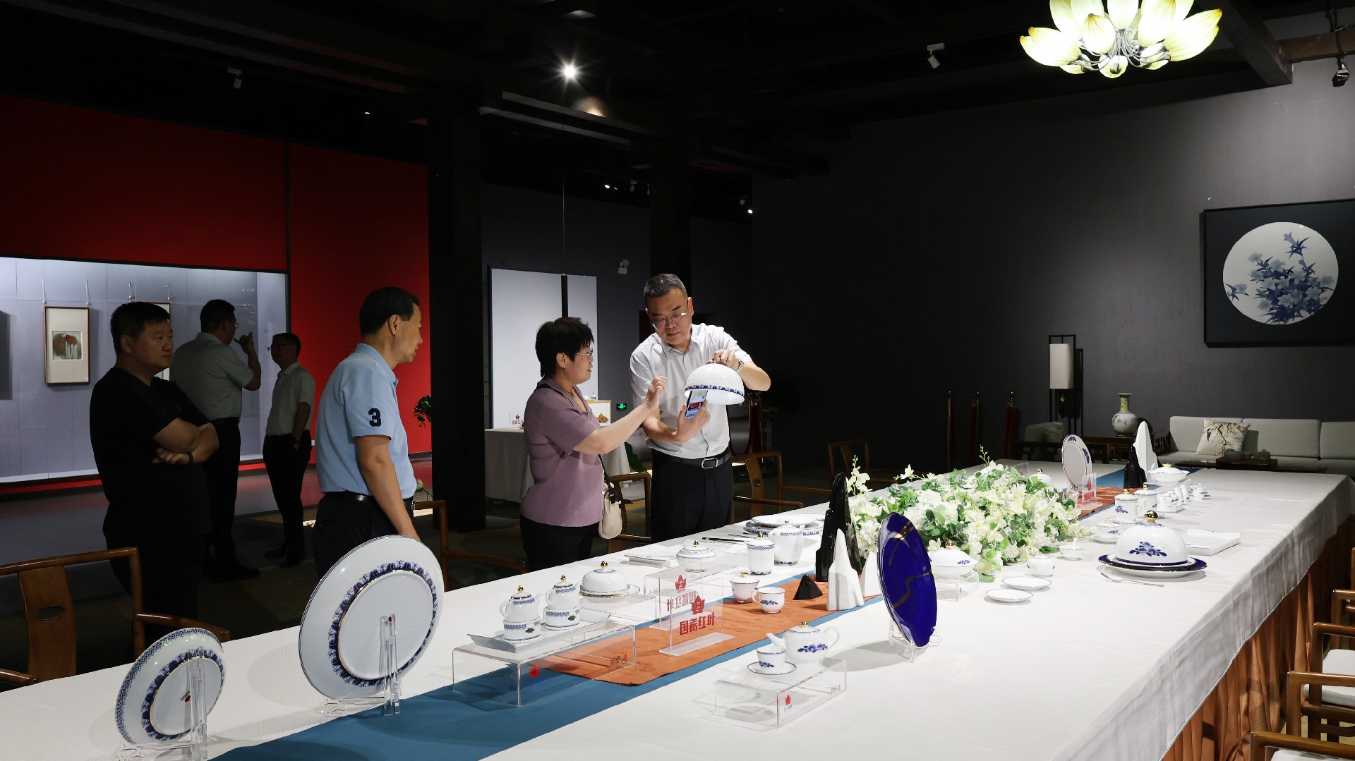 調(diào)研組重點參觀了國瓷館二樓的國宴國禮瓷展區(qū),聚焦核心展區(qū),探尋產(chǎn)業(yè)精髓,一件件國宴國禮瓷宛如璀璨明珠,憑借精湛工藝與典雅設(shè)計,淋漓盡致地展現(xiàn)了景德鎮(zhèn)陶瓷深厚的文化底蘊與高超的制作水準。調(diào)研人員駐足其間,被這些藝術(shù)瑰寶深深吸引,直觀感受到了陶瓷產(chǎn)業(yè)在文化傳承與品質(zhì)打造上的卓越成就。胡軼詳細介紹了每一件展品背后的故事與工藝特色,調(diào)研人員結(jié)合陶瓷制作的關(guān)鍵環(huán)節(jié),精準拋出“如何做好釉面耐高溫易清理”“如何設(shè)計器型嚴絲合縫”“如何做到雙層隔熱且具觀賞性”等核心問題。這些問題直擊陶瓷生產(chǎn)工藝的難點與關(guān)鍵點,充分體現(xiàn)了調(diào)研團隊對陶瓷產(chǎn)業(yè)的深入了解與專業(yè)洞察,胡軼針對這些問題進行了細致解答,從原料選擇、工藝流程到技術(shù)創(chuàng)新,一一剖析,進一步增進了調(diào)研團隊對陶瓷生產(chǎn)流程與技術(shù)創(chuàng)新的認知。