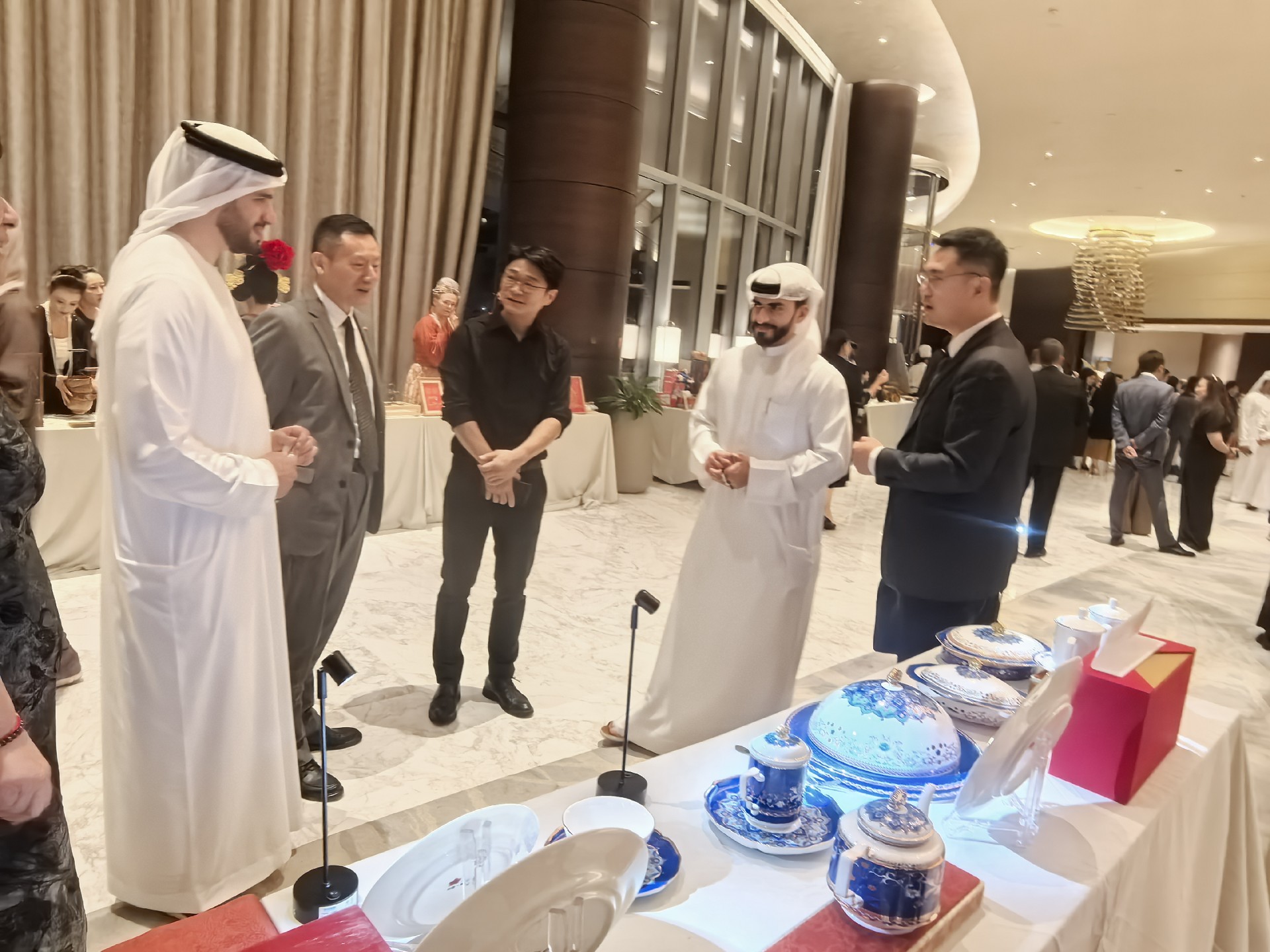 國(guó)瓷紅葉作為中國(guó)高端陶瓷代表品牌,也是受邀參加本次活動(dòng)的唯一陶瓷企業(yè),攜眾多國(guó)宴、國(guó)禮用瓷精彩參展,充分展現(xiàn)出中國(guó)陶瓷的精湛工藝,也深切寄托了對(duì)國(guó)家繁榮、世界和諧的美好期盼,獲得迪拜王室、政府高層、外交使節(jié)的一致贊譽(yù)。